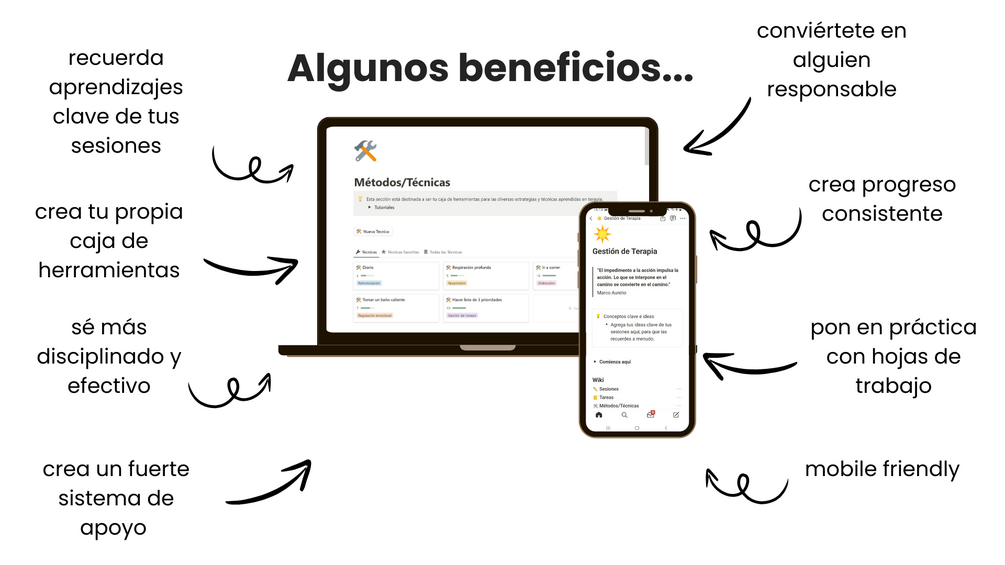 Estarás poniendo el esfuerzo necesario entre tus sesiones, volviéndote más disciplinado y efectivo. Te resultará más fácil desafiar tus pensamientos negativos con una biblioteca llena de herramientas, y llegarás preparado a cada sesión.